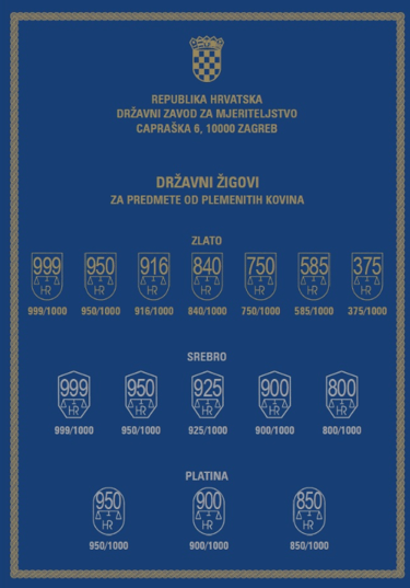 Žigosanjem državnim žigom na predmetima od zlata, srebra ili platine potvrđuje se njihova propisana čistoća i autentičnost. Slijedi prikaz službenih državnih žigova: